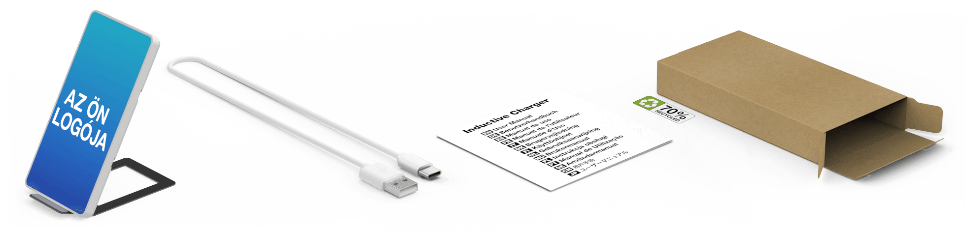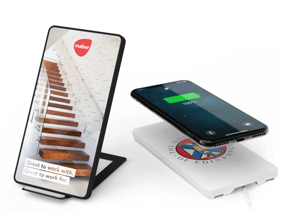 A Stand vezeték nélküli töltő nagy reklámfelületére fénynyomással vihető fel képe, szlogenje, weboldalának cím és még sok más. A tökéletes asztali kiegészítő a legújabb vezeték nélküli töltési technológiával készül, amivel ügyfelei és vásárlói feltölthetnek minden Qi-engedélyezett készüléket, köztük a legújabb iPhone és Android okostelefonokat is.
