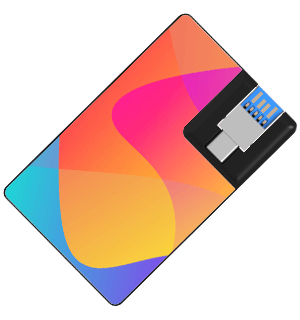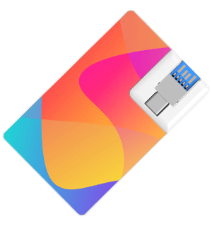 A Wafer Duo szabványos USB- és USB-C-csatlakozót kínál egy szupervékony USB-kártyán. A kártya fő felülete mindössze 2,25 mm vékony, és fényképnyomtatással nyomtatható az Ön képével, logójával stb. élénk részletességgel. A funkcionális USB-csatlakozó elforgatható, így egy pillanat alatt választhat a csatlakozók közül. A Wafer Duo a testvérmodellje.